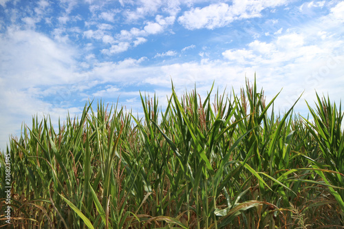 © Joerch, Fototapeta premium Zielone pole na tle biało-błękitnego nieba