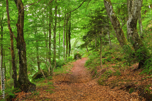 © sborisov, Fototapeta premium Zielony las górski w Pirenejach we Francji