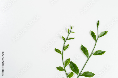 © Sarawut P., Naklejka premium zielony liść na białym tle z kopią miejsca