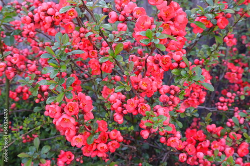 Naklejka premium Zierquitte, rote Blüten, Frühling