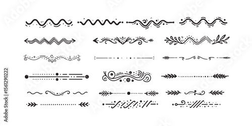 Obraz premium zigzag ,dotted line, Leafy line ,Banner style loop divider.