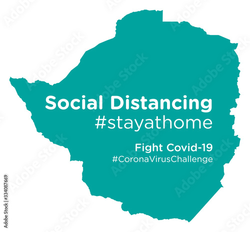 © Ingo Menhard, Fototapeta premium Zimbabwe map with Social Distancing stayathome tag