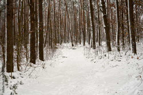 © Marcin Łazarczyk, Fototapeta premium zimowa leśna droga i sosny