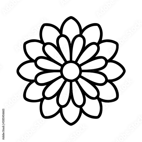 © IsratJahan, Naklejka premium zinnia flower vector icon, simple black outline line icon of zinnia flower, flower vector line art icon