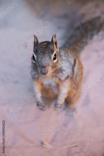 Fototapeta premium Zion National Park Riverside walk trail in Utah with closeup of rock squirrel...