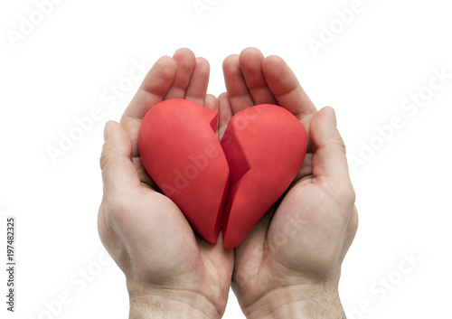© Jakub Krechowicz, Fototapeta premium Złamane serce w rękach na białym tle biały ze ścieżką przycinającą