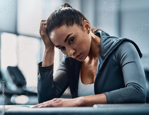 © Monika Janiak-Klicha, Naklejka premium Zmęczona kobieta po treningu na siłowni