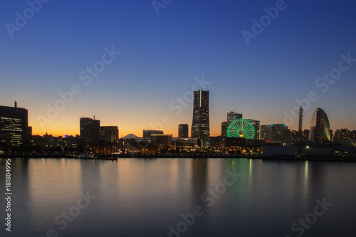 © thesnake19, Naklejka premium Zmierzch Japonii w mieście Jokohama