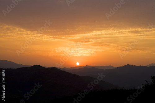 Fototapeta premium Zmierzch w Cao uderzeniu i Bac Kan terenie górskim w Wietnam, Azja