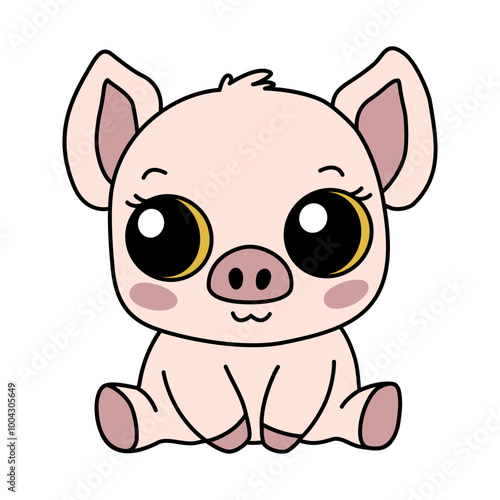 © Viktoriia Melkisheva, Fototapeta premium Zodiac Chinese pig animal of New Year sign icon. Asian kawaii cute style isolated illustration of mascot piggy. Adorable pink piglet with big eyes sitting and smiling on the white background.