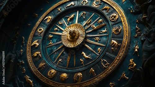 Fototapeta premium Zodiac signs inside of horoscope circle. Astrology in the sky with many stars...