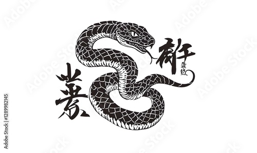 © Surachate, Obraz premium Zodiac Snake Calligraphy, intricate brush strokes form the kanji for snake, embodying elegance and tradition in Japanese art.