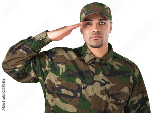 © BillionPhotos.com, Naklejka premium Żołnierz w mundurze Salutowanie