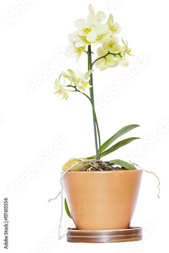 © danako, Fototapeta premium Żółta orchidea w ceramicznej doniczce