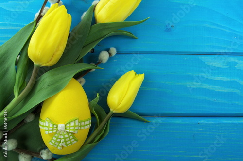 © saltare, Fototapeta premium żółte tulipany z pisanką