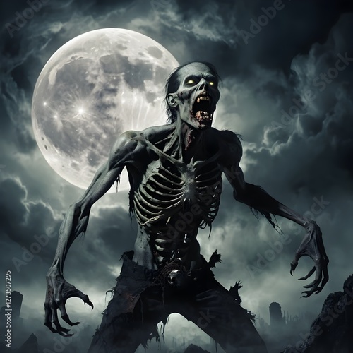 © Teeranan, Fototapeta premium Zombie Apocalypse Under the Full Moon