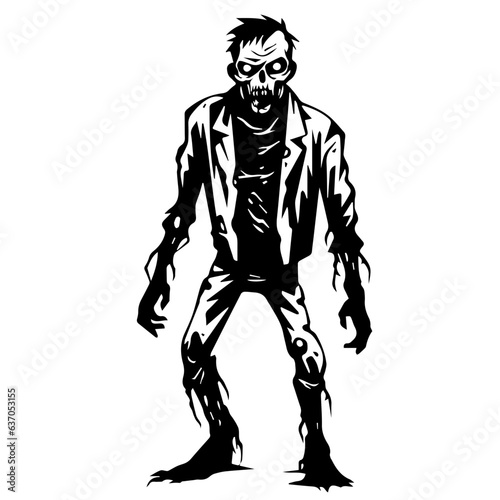 © DLC Studio, Fototapeta premium Zombie black silhouette isolated on white