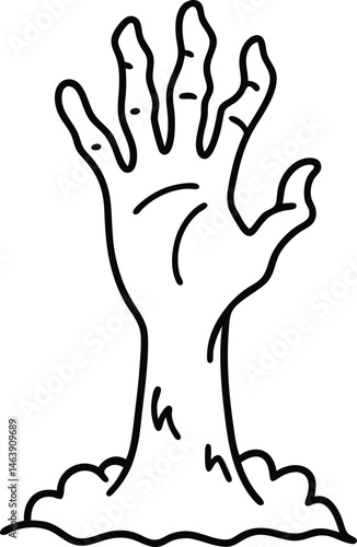 Obraz premium Zombie Hand Rising from the Ground Spooky Line Art Illustration