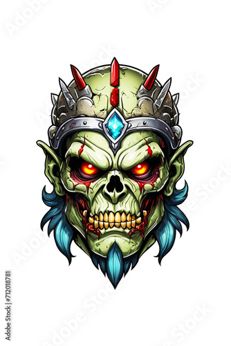 © HIKMAHHARFI, Naklejka premium Zombie head soldier with crown isolated on white background