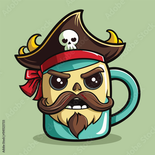 © Zee Editx, Fototapeta premium Zombie Pirate Coffee Mug with Hat and Mustache - Unique Nautical Undead Design
