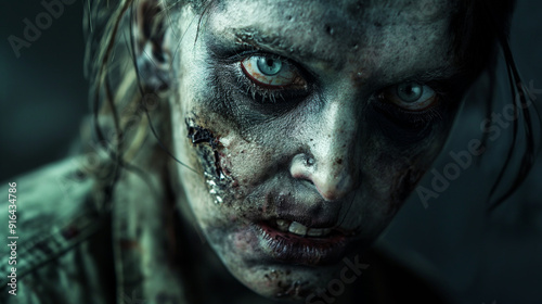 Fototapeta premium Zombie Portraits: Lifelike, eerie depictions of zombies with dark, unsettling...