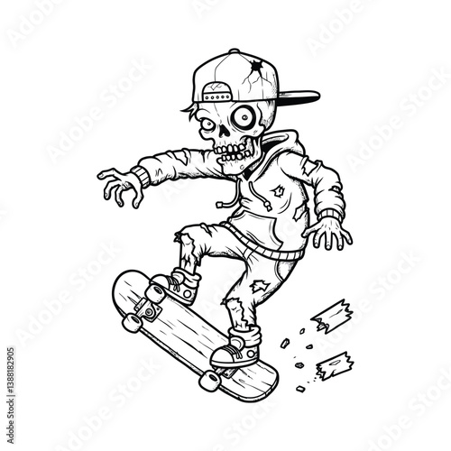 © Roowan, Obraz premium Zombie skateboarder riding skateboard sketch illustration