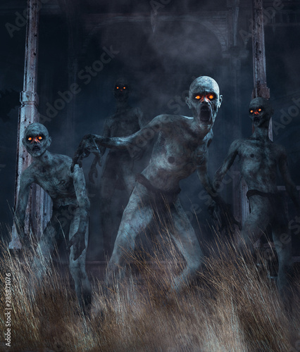 © Joe Therasakdhi, Fototapeta premium Zombies awaken,Undead from a long time land,3d illustration for book cover