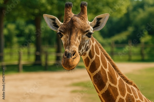 © The 2R Artificiality, Obraz premium Zoo giraffe encounter