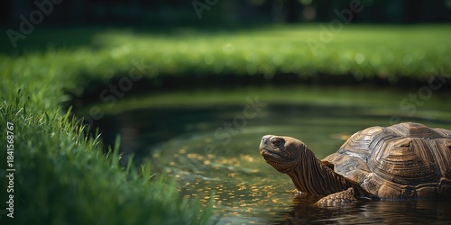 © TheWaterMeloonProjec, Fototapeta premium Zoo habitat featuring an African spurred tortoise, highlighting species preservation