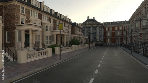 © kx59, Fototapeta premium オンラインミーティング用背景 テレビ会議背景用 ZOOM会議背景用 CG 街頭 道路 歩道 街並み ロンドン ニューヨーク background cityscape