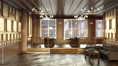 Naklejka premium テレビ会議背景用 ZOOM会議背景用 CG 部屋 Luxury Room ラウンジ ロビー テーブル ソファ video conferencing background