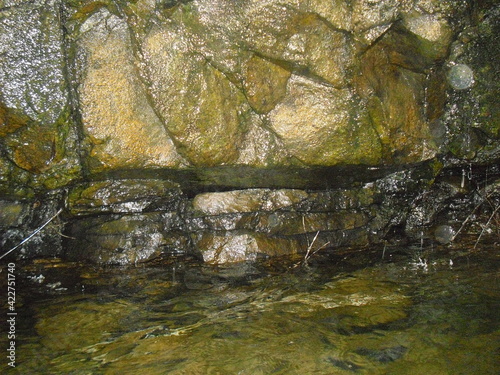 Fototapeta premium Zoom sur la paroi pierreuse d'une cascade , d'un trou d'eau