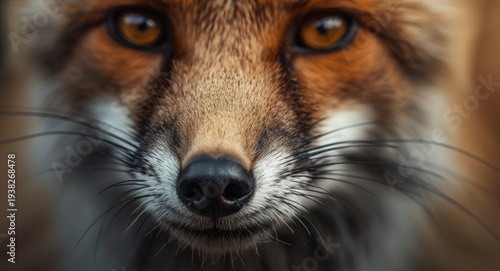 Naklejka premium Zoomed capture of a fox nose and intense amber eyes
