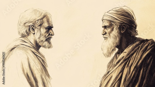 Fototapeta premium Zophar’s Concern and Authority Illustrated - Speaking to Job About Arrogance and Its Perils, Beige Background