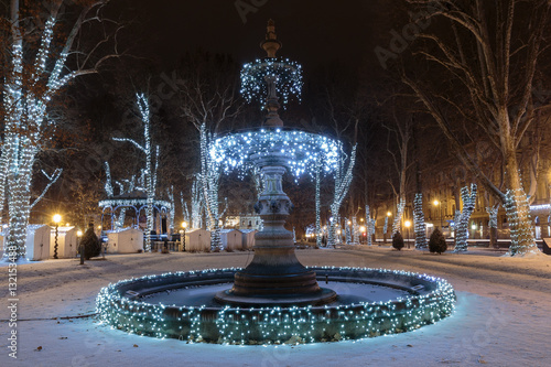 Fototapeta premium Zrinjevac park Fountain decorated by Christmas lights as part of Advent in...
