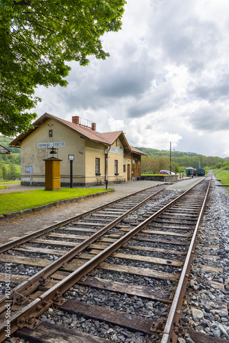 © Richard Semik, Obraz premium Zubrnice Train Station in Czechia on Cloudy Day