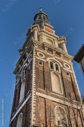 Fototapeta premium Zuiderkerk (Southern church) - XVII century Protestant church in Amsterdam Nieuwmarkt area. Church constructed in 1611, church tower (1614) dominates surrounding area. Amsterdam. Netherlands.