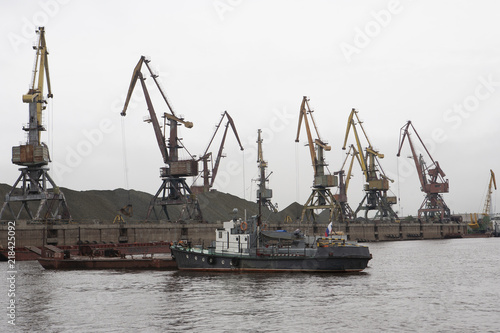 © Сергей Горланов, Fototapeta premium Żurawie portowe na rzece