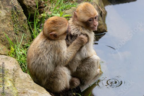 Obraz premium Zwei Berberaffen am Wasser
