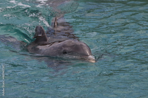 © Peter, Fototapeta premium Zwei Delfine schwimmen nebeneinander