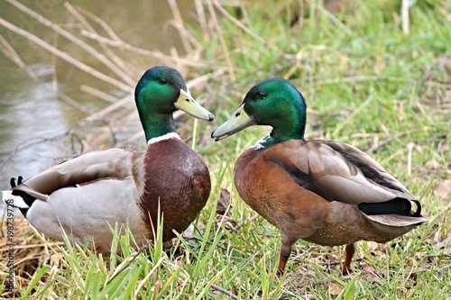 © Manfred Richter, Fototapeta premium zwei Erpel der Stockente