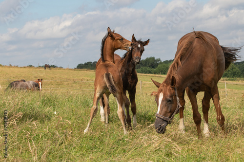 © mavcon, Fototapeta premium zwei Fohlen spielen auf der Koppel