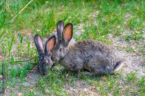 © Ina, Fototapeta premium Zwei Hasen auf einer Wiese