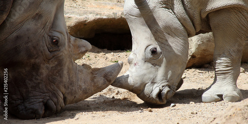 Naklejka premium Zwei Nashörner, Horn an Horn