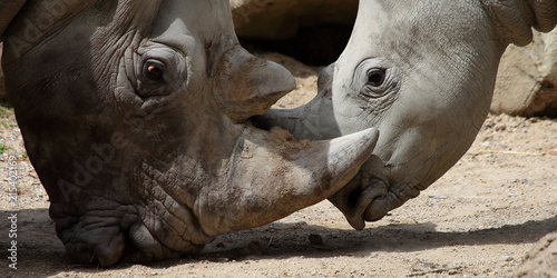 © buellom, Naklejka premium Zwei Nashörner Kopf an Kopf