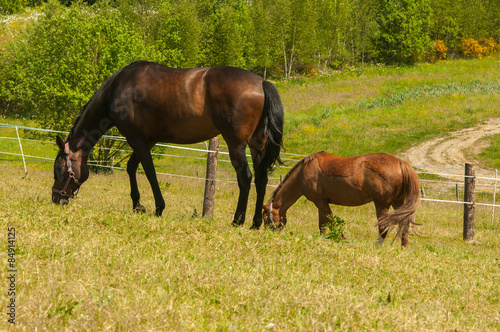 Fototapeta premium Zwei Pferde beim grasen