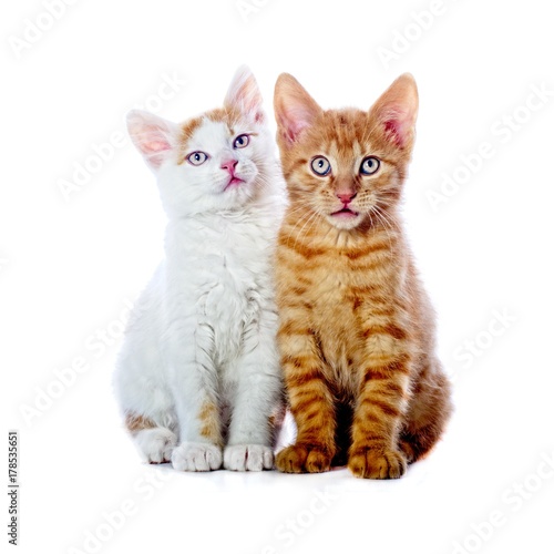 Obraz premium Zwei süße Kätzchen isoliert auf weiß