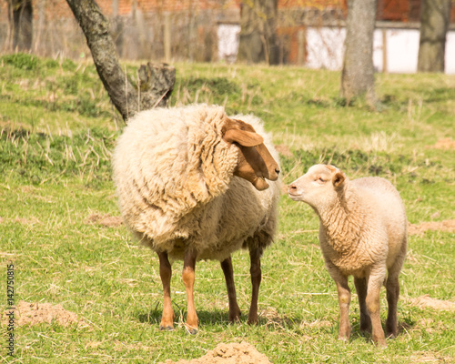 Fototapeta premium Zwei Schafe Mutter mit Kind auf der Weide.
