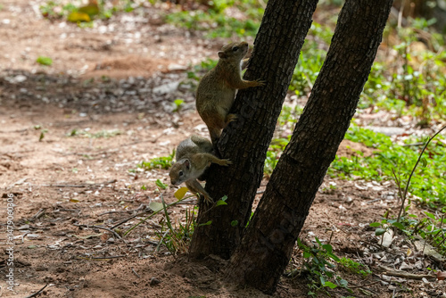 © Markus Kammermann, Fototapeta premium Zwei Smith-Buschhörnchen klettern den Baum hoch