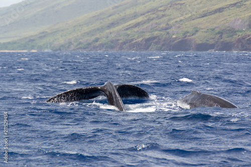 Obraz premium Zwei Wale, Fluke und Rücken auf Maui, Hawaii